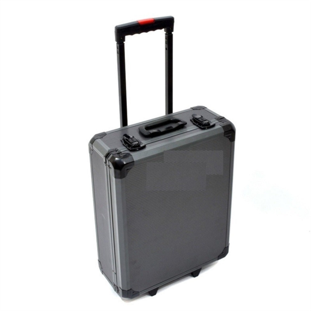 Nosso kit de ferramentas final vem em uma elegante caixa de alumínio, com compartimentos dedicados a cada tipo de ferramenta para fácil acesso. A caixa possui uma alça ajustável, um mecanismo de bloqueio resistente e rodas de movimento livre para facilitar a portabilidade.