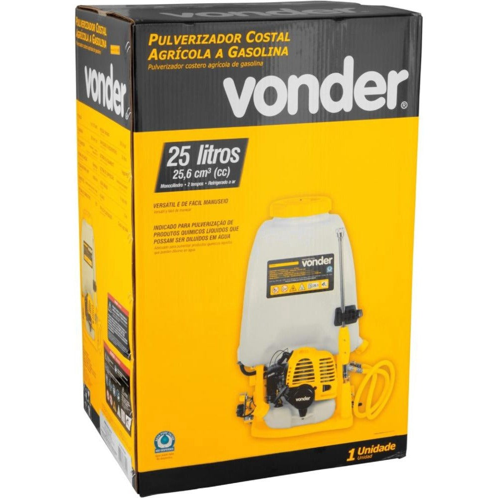 Conteúdo da embalagem: 1 Pulverizador. Acompanha: 1 extensão, 1 lança com 2 bicos leque, 1 lança reta com regulador e bico cônico, 1 mangueira de pressão, 1 empunhadura, 1 kit de vedação, 1 chave de vela, 1 frasco dosador, 1 alça costal, 1 chave allen 10 mm, 1 chave allen 6 mm e 1 chave phillips.