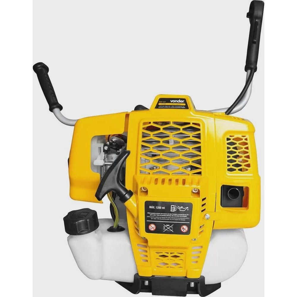 Possui guidão regulável e cinto com alça dupla almofadada, que confere maior conforto ao operador e melhor distribuição do peso do equipamento. Conta ainda com sistema de emergência caso seja necessário soltar a roçadeira, além de frasco graduado que facilita a medição/mistura de gasolina e óleo 2 tempos. Equipamento pronto para uso, pois já acompanha lâmina três pontas e carretel com fio de nylon. Possui sistema de partida de fácil acionamento (Easy-start), que deixa o acionamento do retrátil mais suave na hora de dar a partida. Indicada para uso em residências, sítios, chácaras e condomínios, para limpeza e manutenção de jardins, poda de gramas, capim e ervas daninhas. No abastecimento, colocar gasolina misturada com óleo 2 tempos de boa qualidade, na proporção 25:1 (40 ml de óleo para 1 litro de gasolina). Diâmetro máximo da lâmina: 255 mm. Atenção: nunca toque na lâmina com o equipamento ligado, utilize carretel com fio de nylon e não lâminas em terrenos com risco de pedras.