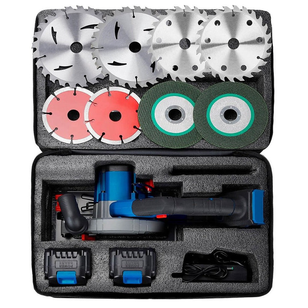 A Serra Circular Portátil a Bateria 48V é uma ferramenta robusta e versátil, projetada para cortes precisos em uma variedade de materiais como madeira, vidro, azulejos e tijolos. Com seu motor brushless de 1200W, ela oferece alto desempenho, durabilidade e uma vida útil prolongada. Ideal para uso profissional, sua bateria de 20000mAh garante até 1,5 horas de autonomia contínua, permitindo que você realize trabalhos sem interrupções.