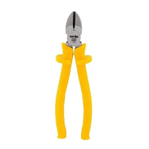 -01 Alicate de Corte Diagonal 6", Isolação 1000V ( De acordo com Recomendação da NR-10). Indicado para cortar e desencapar fios e cabos elétricos, além de arames. Produzido em Aço Cromo Vanádio, proporcionando maior resistência e durabilidade. Possui cabo isolado anatômico e antiderrapante, com abas de proteção, que oferece maior conforto e segurança ao operador. Marca Vonder.