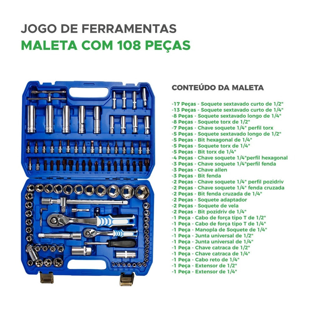 jogo ferramentas 108 pcs - profissional E automotivo