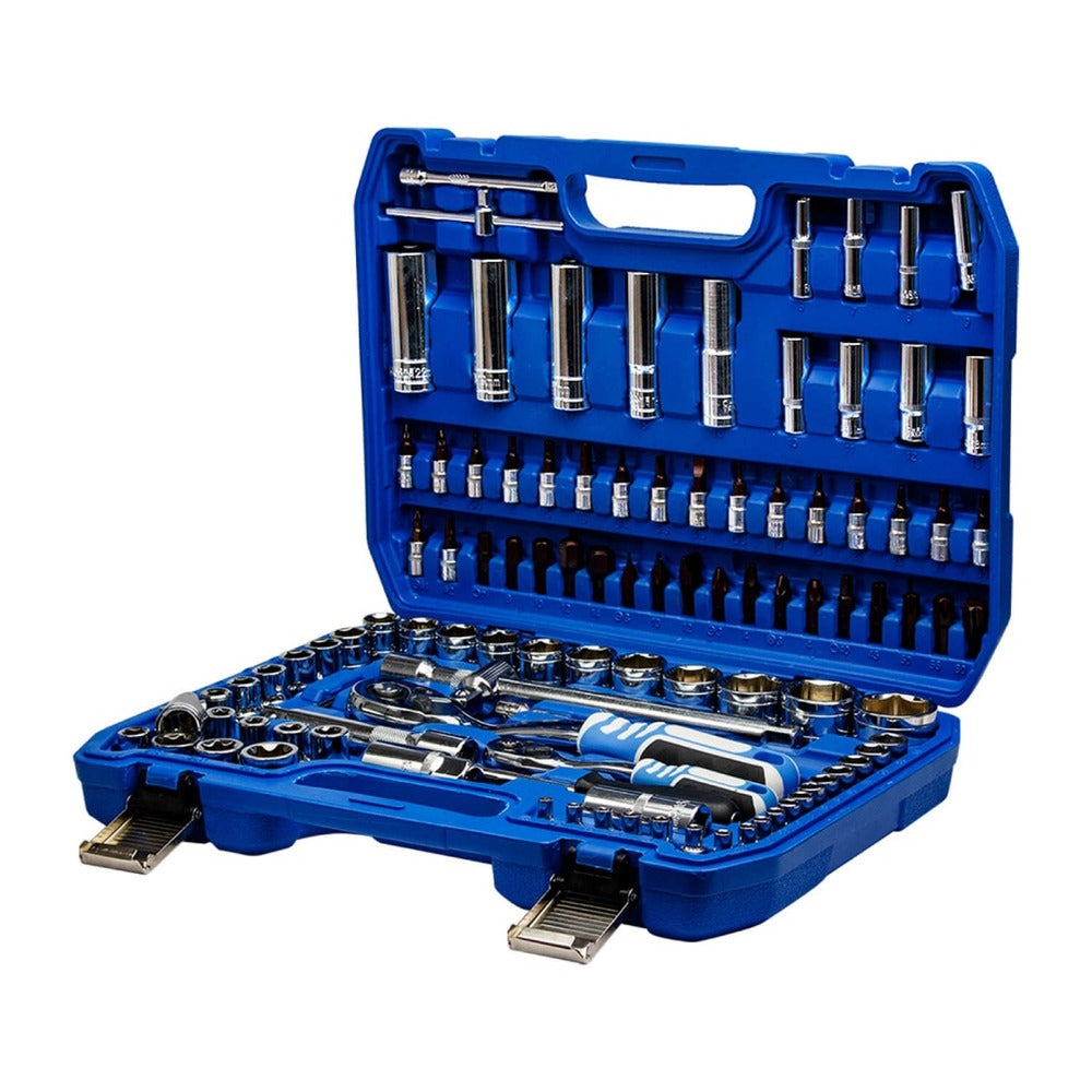 Esse conjunto inclui uma variedade de ferramentas manuais, como chaves, soquetes, alicates e muito mais, projetadas para uma ampla variedade de aplicações, como reparos automotivos, manutenção de veículos e trabalhos de casa. Esses conjuntos de ferramentas são utilizados por mecânicos profissionais, engenheiros e técnicos de manutenção.